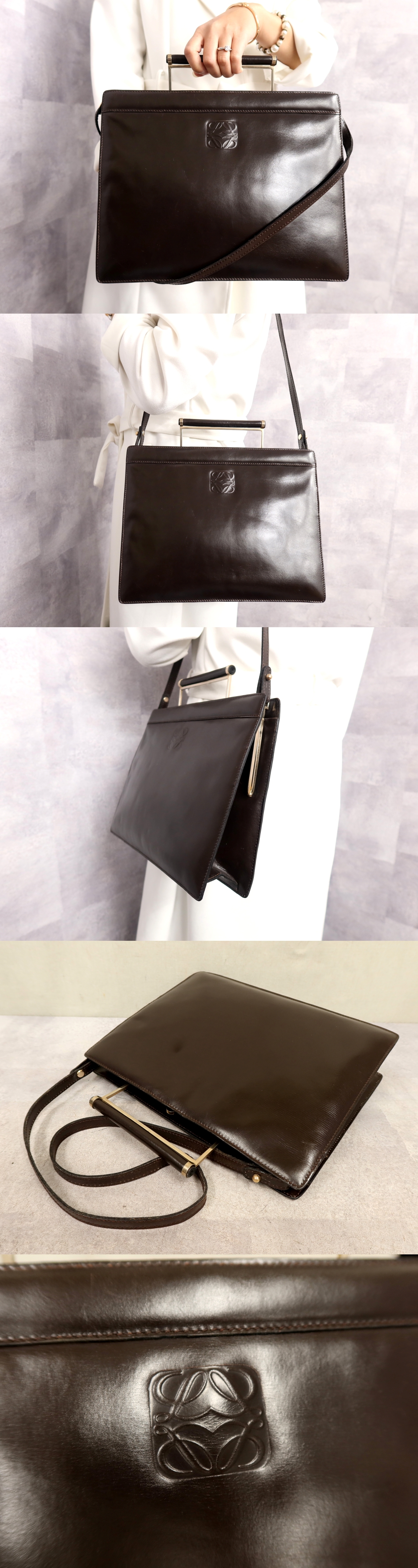 ●超美品●LOEWE ロエベ●アナグラム●カーフ レザー 本革●2way ハンド バッグ●ブラウン●ゴールド金具●ヴィンテージ●B5 収納●Js62121 收藏