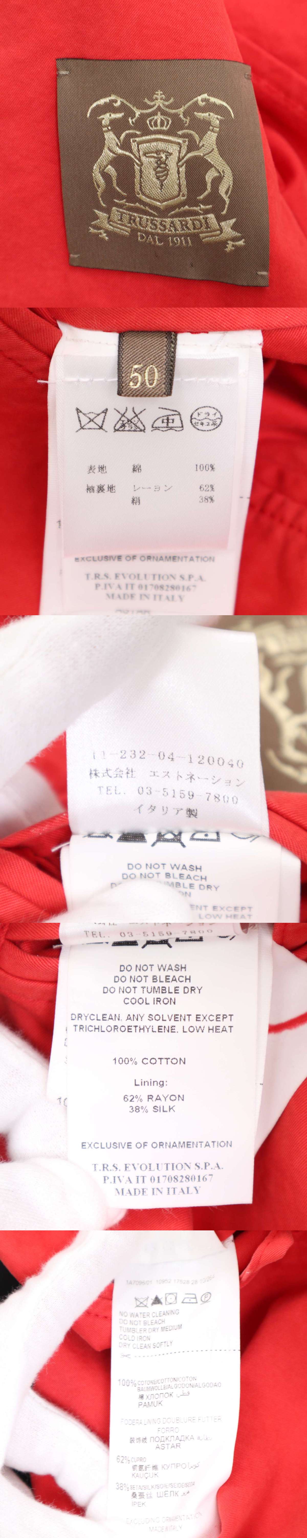 イタリア製★ TRUSSARDI トラサルディ 通年 コットン ツイル★ アンコン テーラード ジャケット Sz.50 メンズ 收藏