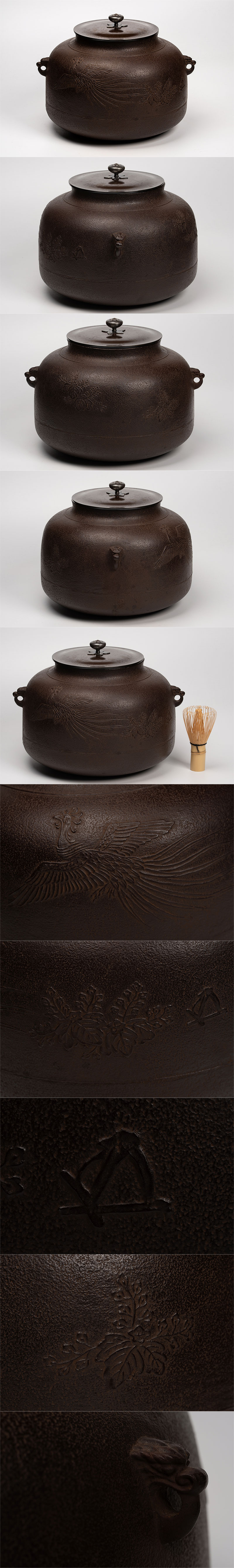 人間国宝 角谷一圭 鳳凰桐紋真形釜 日刀保たたら和銑 鵬雲斎好「茶道具・釜・炉釜」共箱 送料無料 【真作保証】 收藏
