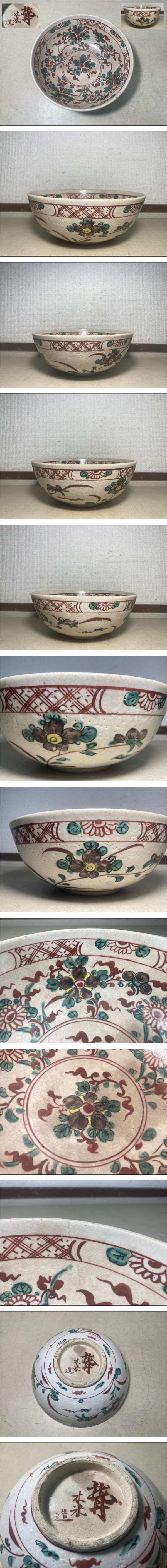 京都8☆ 木米 造 写 丸皿 花 丼 高さ 約9cm 横幅 約21.5cm 重量 約869g 現状品 古物 骨董品 收藏