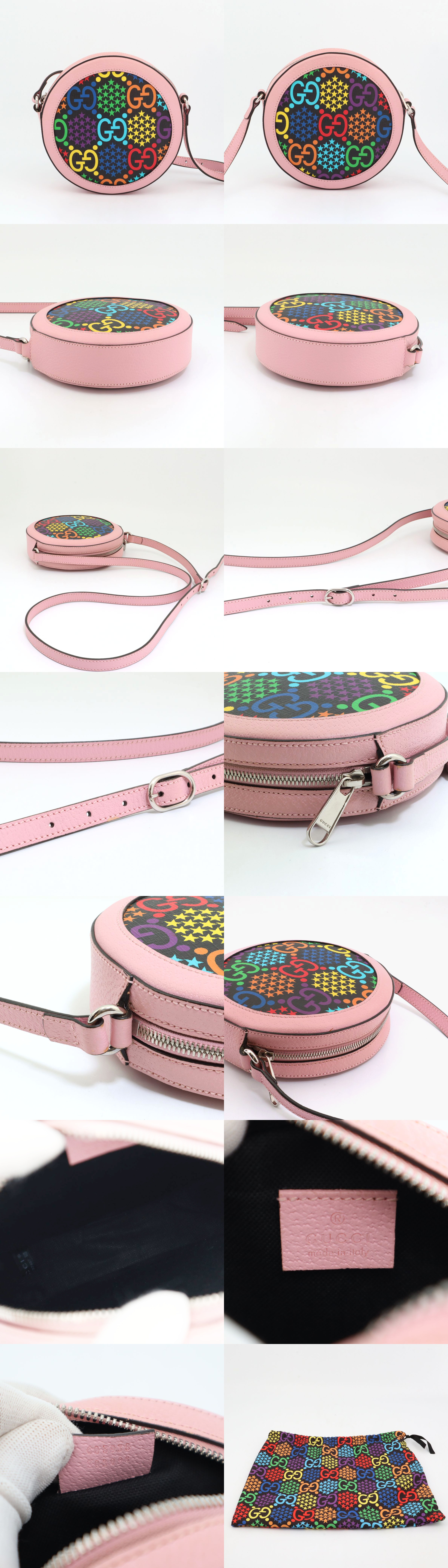 美品 グッチ GUCCI GGサイケデリック ショルダーバッグ 斜め掛け マルチカラー ピンク レディース レザー 603938 收藏