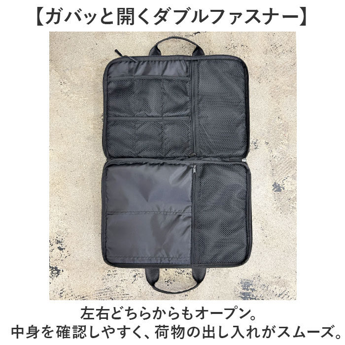 | 商品説明 | ・・【収納力と機能性が嬉しい!】 ・無駄な装飾を省いたシンプルなデザイン「NoiR ノアール Fab PC case」。 ・【ガバッと開くダブルファスナー】 ・左右どちらからもオープン。中身を確認しやすく、荷物の出し入れがスムーズ。 ・【PCもタブレットもまとめて持てる】 ・PCやタブレットをすっきりと収められる2層構造で、通勤や通学でも頼れる快適収納! ・【ビジネスシーンで活躍する2層構造】 ・PC本体と周辺機器をそれぞれ分けて入れられる構造で、必要なものをひと目で把握! ・【17インチまで対応するスペース】 ・17インチまでの大型PCを収納可能。L字ファスナーが大きく開き出し入れもスムーズ。 ・【フルオープンで見渡せる整理力】 ・周辺機器を入れるポケットは180度開く!ケーブルやマウスが一度で確認できる見やすい仕様。 ・【起毛素材で守るタブレット収納】 ・内側にはタブレットをふんわり包む起毛素材を採用し、画面を傷つけにくい嬉しい設計。 ・【小物管理に便利な多彩ポケット】 ・スマホやメモ帳、ガジェット類をきれいに区分けできるポケットが多く、整理がしやすい◎ ・【雨の日でも安心できる撥水素材】 ・ちょっとした水滴を弾く撥水仕様で、外出時の急な雨から大切なPCを守る心強い耐水性。 ・(※)完全防水ではありません。 ・【移動を助けるキャリーオンベルト】 ・キャリーケースに通せるベルト付きで、出張や旅行、学校での移動も軽やかにサポート。 ・【環境にやさしいサステナブル素材】 ・廃棄ペットボトルを原料にした繊維糸を用いたGRS認証のリサイクルナイロン生地を採用。 ・【日常に溶け込む万能カラー】 ・ストリートにもモードにもマッチする、性別を問わないスタイリッシュな仕上がり。 |