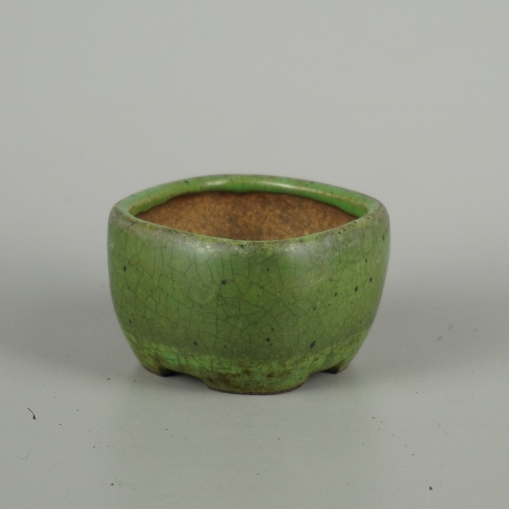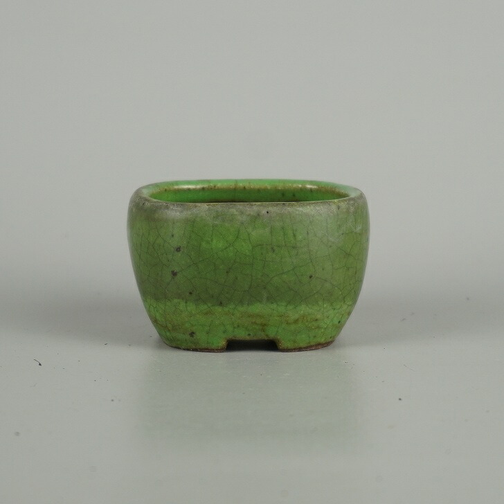 【中古】 盆栽鉢 鵬松 小鉢 長辺 約 6.7cm 正方鉢 釉薬 現品 中古鉢 收藏