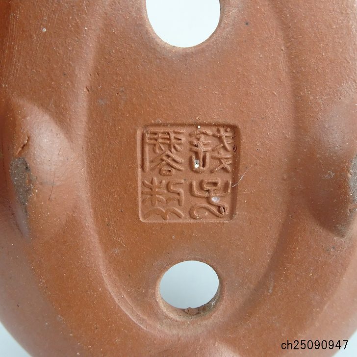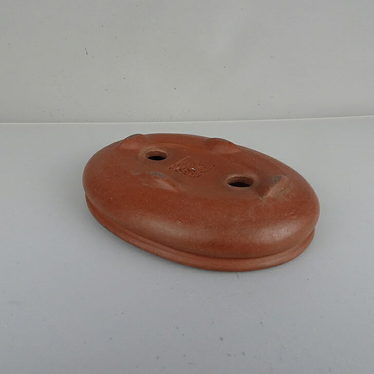 【中古】盆栽鉢 常滑 銭号 小型 長辺 約 14.7cm 楕円鉢 袋式 泥物 現品 中古鉢 收藏