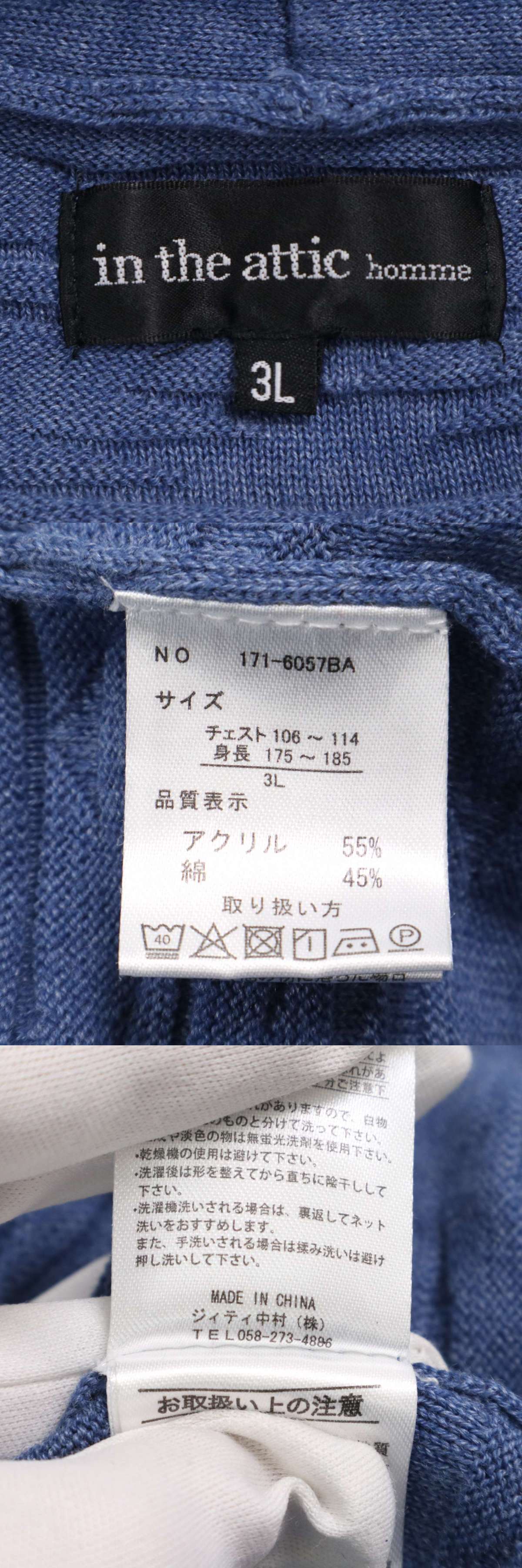 in the attic homme インジアティック オム エンボス 総柄★ ショールカラー ニット カーディガン Sz.3L メンズ 大きい 特大 收藏