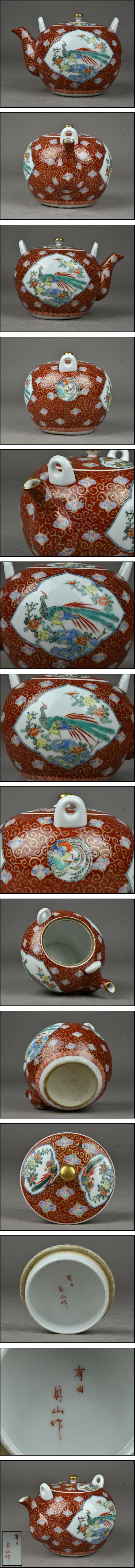 | 《品 名》:有田焼【貞山作】色絵 鳳凰唐草図 急須 煎茶道具 《寸 法》:高さ 約 13cm 幅 約 17.5cm 行 約 14.2cm 《総重量》:ーg 《状 態》:経年や使用による汚れやスレ、小キズなどがございます。 画像をよくご確認ください。 骨董品、アンティークなため掃除などしておりません。ご了承ください。 使われているパソコンのディスプレイの状態により、実物と色合いが若干異なることがあります。 中古品とご理解の上ご入札をお願い致します。 | |||
