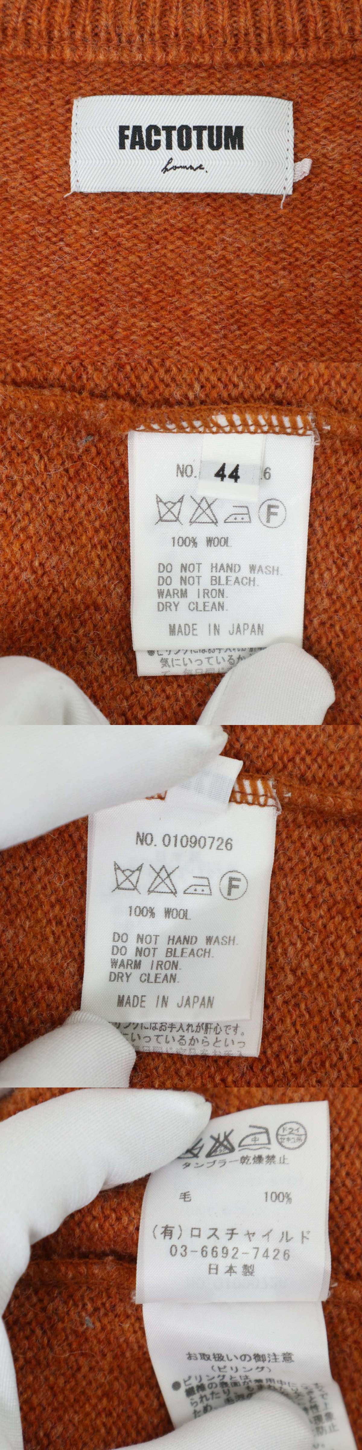 FACTOTUM ファクトタム 秋冬 ウール100%★ エルボーパッチ デザイン カーディガン ニット Sz.44 メンズ 日本製 收藏