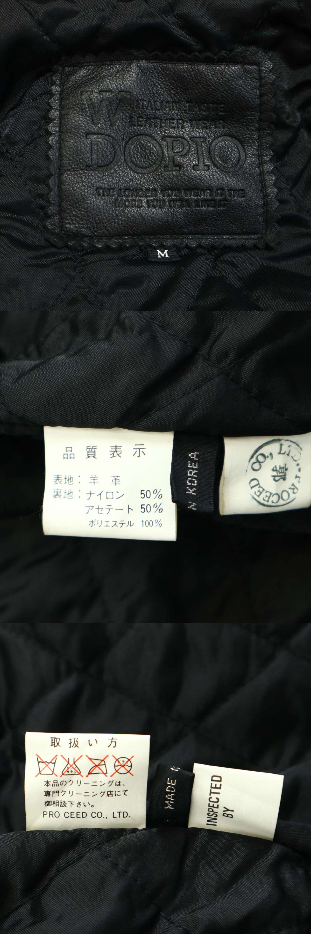 DOPIO ドッピオ 秋冬 羊革 リアル ラム レザー★ 裏地中綿 キルティング ミドル丈 コート ラグラン Sz.M メンズ 黒 收藏