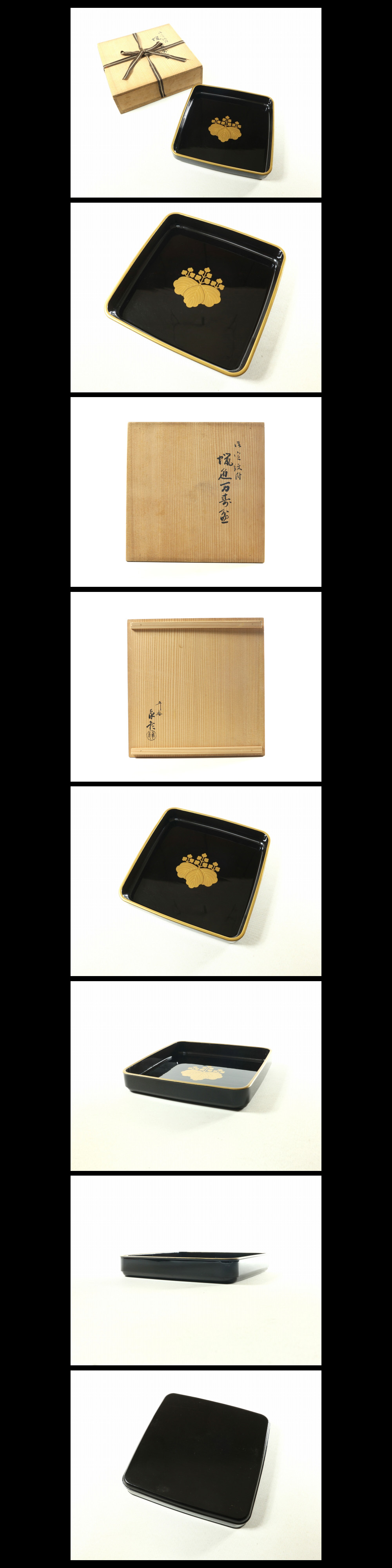 平安象彦、五三桐紋が描かれた蝋色万寿盆。