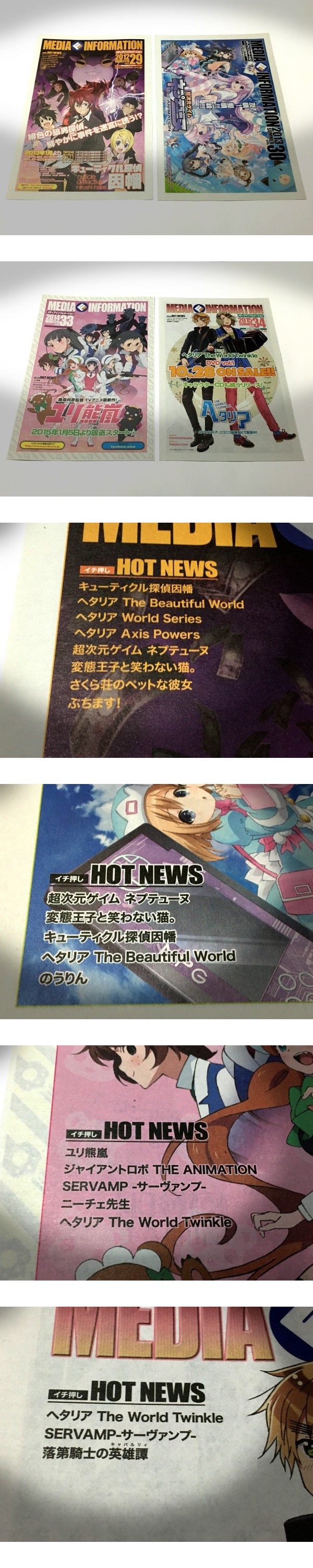 《 MEDIA INFORMATION 2012~15年のうちの VOL.29 30 33 34 》キューティクル探偵因幡 ヘタリア ネプテューヌ ユリ熊嵐 /配布ペーパー 新聞 收藏