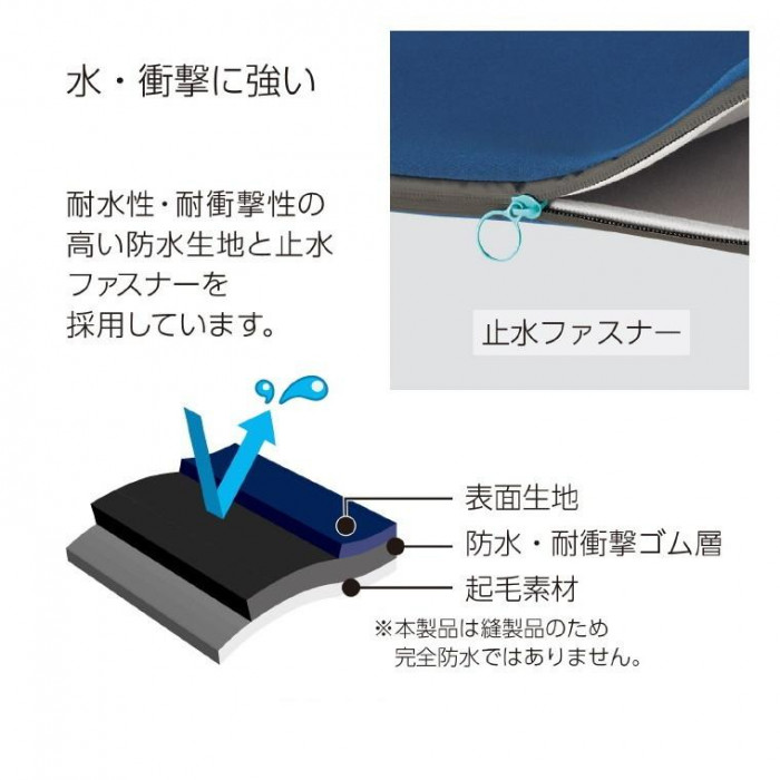 | 耐水性・耐衝撃性の高い防水生地と止水ファスナーを採用しているので水・衝撃に強い。外側がフラット形状なので、ランドセルに出し入れしやすいです。L字型ファスナーで開口部が広いので、タブレットが出し入れしやすいです。ファスナーが開け閉めしやすいリング型の引き手になっています。内側にネームタグが付いています。 【ご使用上の注意】 ※縫製品のため完全防水ではありません。また、縫製品のため上記寸法には差が出る場合がございます。ご了承ください。 |