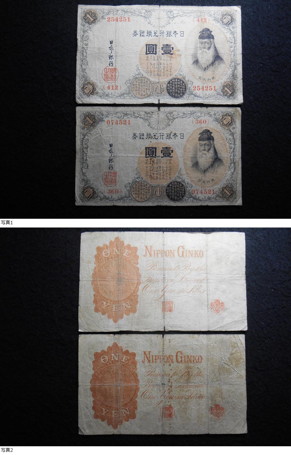 | 旧紙幣 武内1円 2枚 B-0399 |