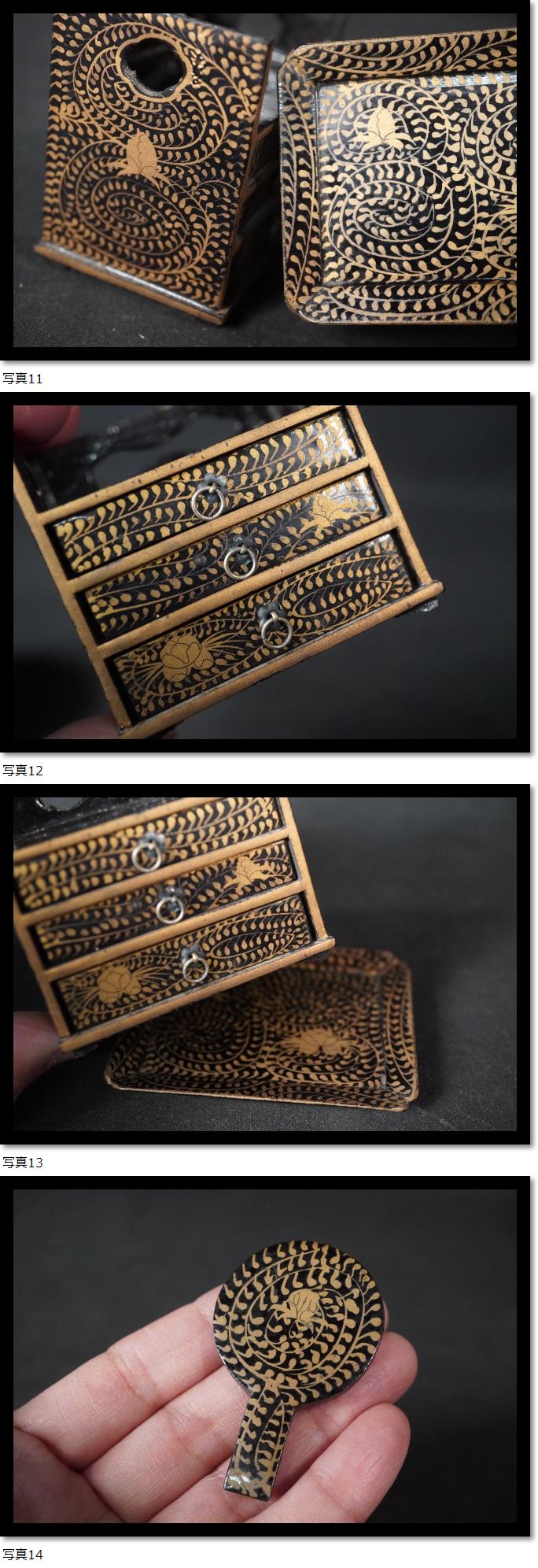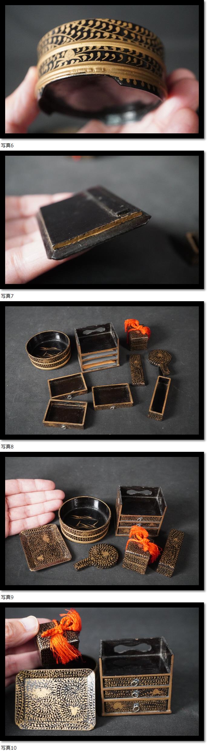 ひな人形飾り お雛様 ミニチュア家具 金彩 蒔絵 漆芸 伝統工芸 レトロ 古美術 木製 雛道具 重箱 家具 手鏡 收藏