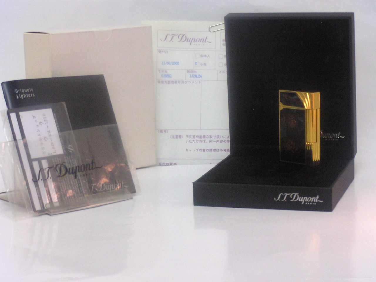 【 金ラメ ライン2 】S.T.Dupont イエローゴールド & 金ラメ ダークブラウン(ホボ黒) ガスライター◆葉巻 煙草! デュポン 喫煙具グッズ◆ 收藏