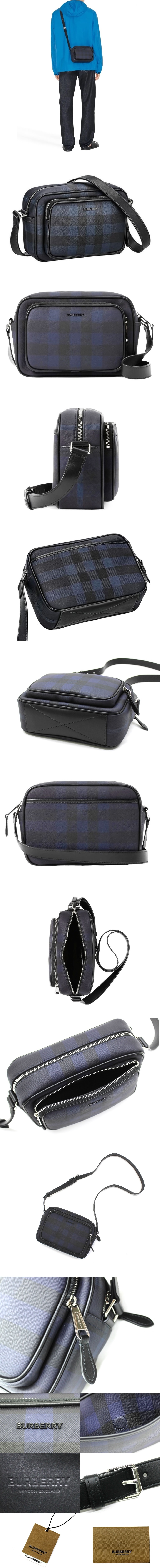 ●25万新品◆BURBERRYバーバリー◆スクエアデザイン パディチェック柄 クロスボディ メッセンジャーショルダーバッグ 紺黒 1円 收藏