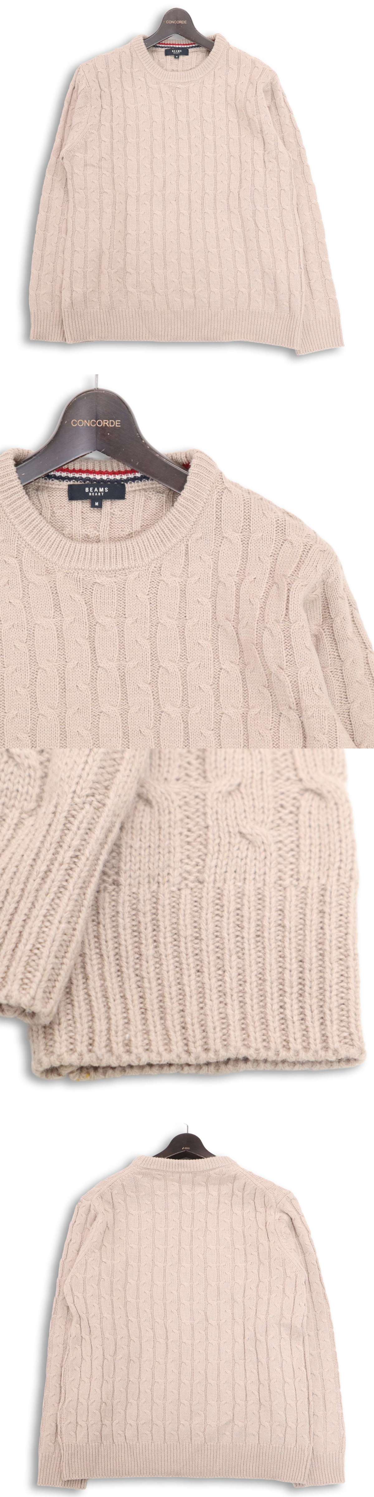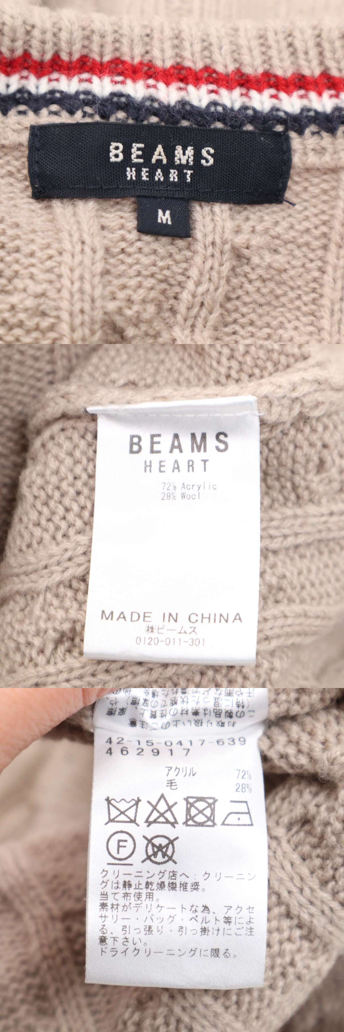 BEAMS HEART ビームス ハート 秋冬 ウール混★ クルーネック ケーブル セーター ニット Sz.M メンズ 收藏