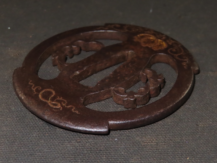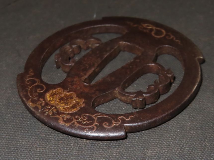 桐唐草象嵌透鍔 江戸 鉄 象嵌、透かし 7.3×6.8×0.3cm 80/160g 收藏