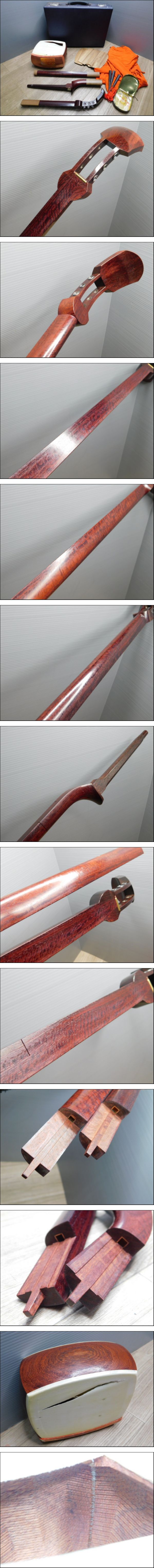 【細棹高級三味線】びっちりトチ 紅木 金細(金ホゾ)一本二本溝(二段溝) K18刻印あり 子持ち綾杉胴 長唄 小唄/M492 收藏