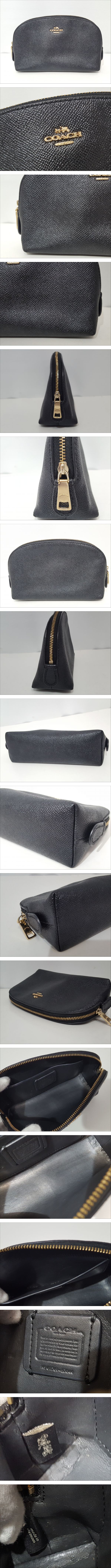 【美品】直営店購入品 COACH コーチ 57844 コスメティックポーチ/約11×17×5cm/小物入れ/ブラック/本革レザー/化粧ポーチ/06KO012001 收藏