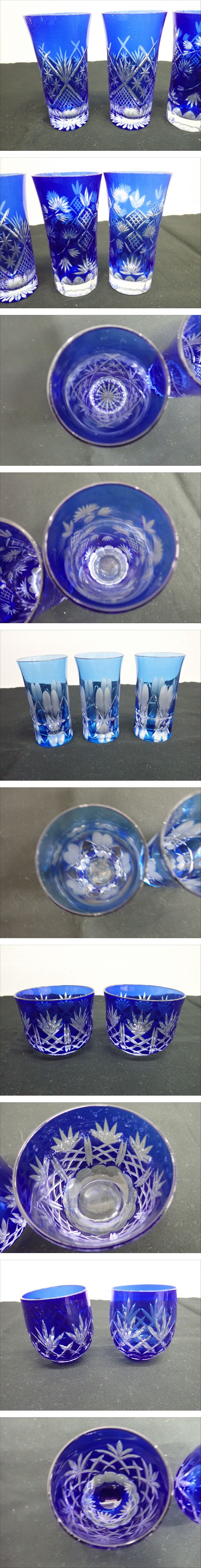 D217-120 切子まとめ 江戸切子・青被せ切子ガラス・クリスタルガラス BOHEMIA ボヘミア デキャンタ・ピッチャーグラス 水差し/グラス 收藏