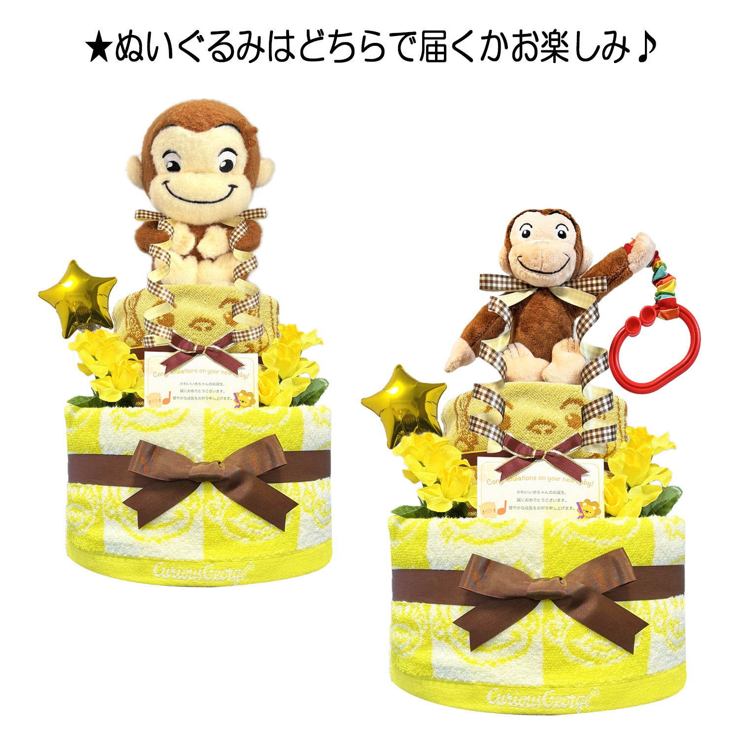 送料無料★おむつケーキ 出産祝い 大人気おさるのジョージ 豪華2段 女の子 男の子 ベビーシャワー ハーフバースデー オムツケーキ ギフト 收藏