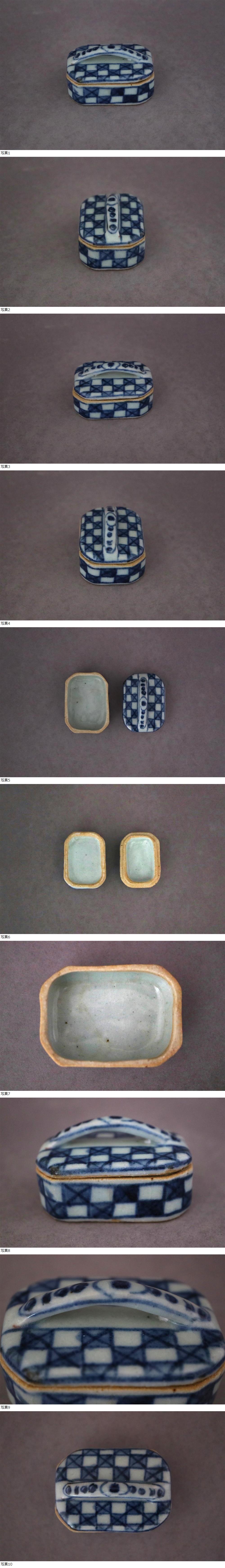 | 【GTS】中国明清・染付長角ハジキ「形物香合相撲・番付表」香合17~18世紀頃 |