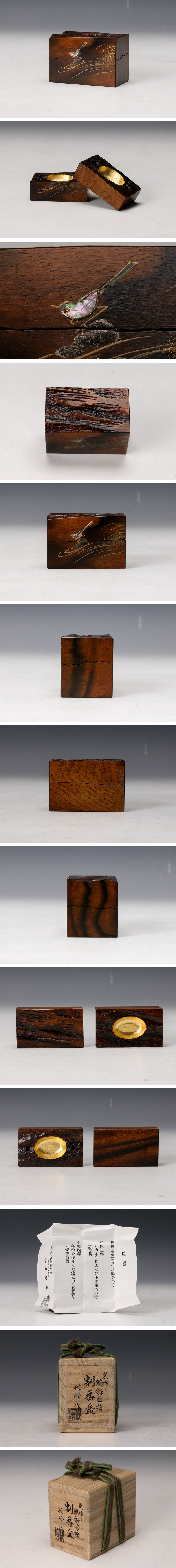 【佳香】二代 高崎秋峰 黒柿鶺鴒蒔絵割香合 内金 共箱 栞 茶道具 本物保証 收藏