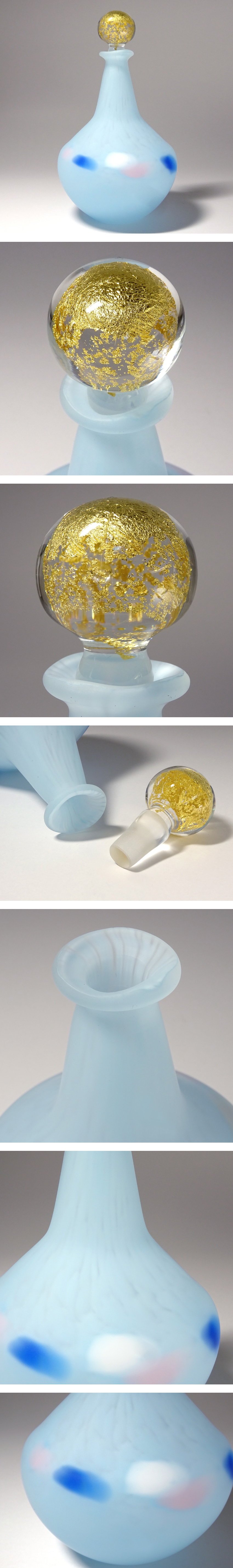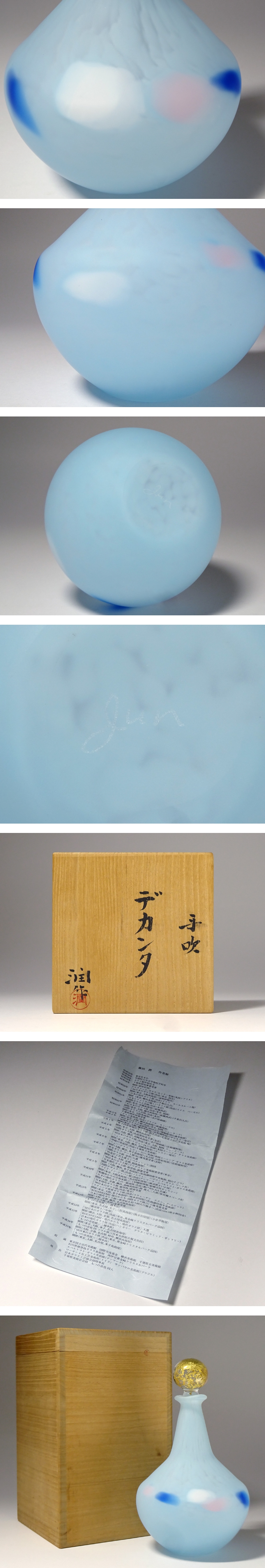 慶應◆日本ガラス工芸協会理事長【藤田潤】作 手吹硝子 金彩 デカンタ サインあり 共箱付 藤田喬平の長男 收藏