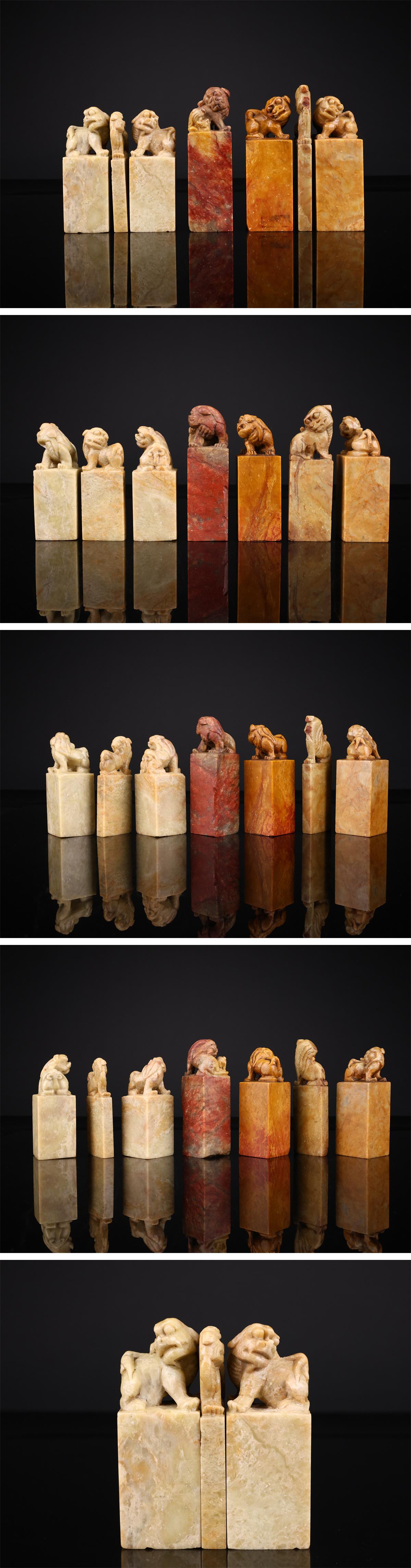 【吉】IB431 唐物 【寿山石】 青田石 印材 印章 7点 一括出品 重1865g/時代のホツあり! 收藏