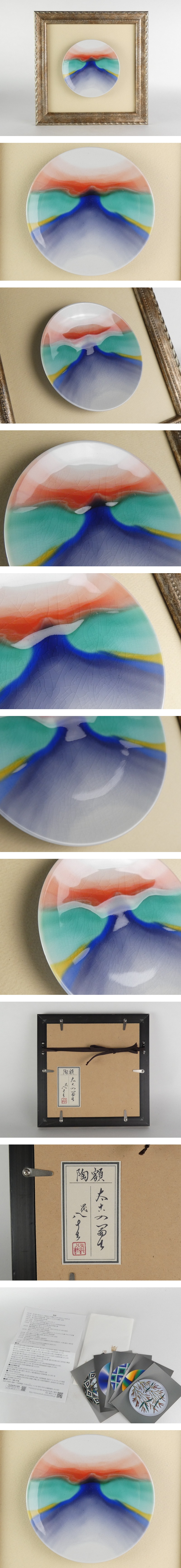 【都屋】四代 徳田八十吉「陶額 太古の富士」保証品 共シール 額装 九谷焼 R572 收藏
