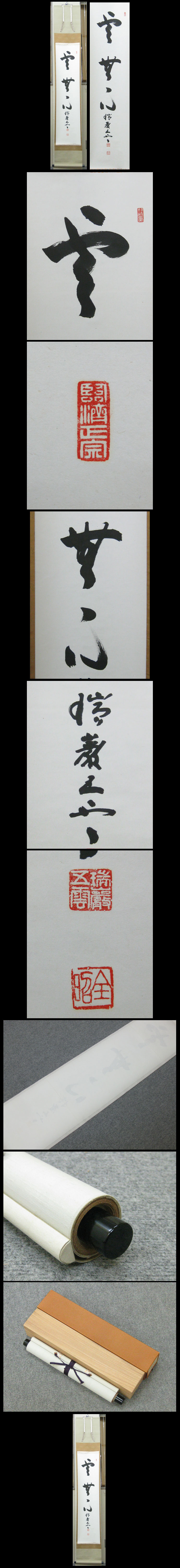 【加藤隆芳】1915-1992 松島瑞巌寺128世。 臨済宗の僧。瑞巌寺住職。栃木県生。 号は五雲軒 妙心寺塔頭蟠桃院住職を経て瑞巌寺に住す。 著書に『禅を語る』『まことの知恵』がある。 大正13年頃京都妙心寺山内蟠桃院 加藤全敬和尚について得度 昭和9年 天龍僧堂に掛搭 関精拙老師に参禅 昭和13年 蟠桃院住職 昭和15年 天龍僧堂へ再掛搭 関牧翁老師に嗣法する 昭和34年 松島 瑞巌僧堂師家に就任 昭和63年 退任 平成4年(1992)歿、78歳。 ★商品サイズ★ ■掛軸 207×34.5cm ■作品 125×31.5cm ★商品の状態★ 良い状態です。裏側も良い状態です。 時代など詳しくは画像にてよく確認のうえでご検討いただければと思います。 どうぞよろしくお願いいたします。 |