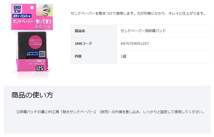 ソフト99 サンドペーパー用研磨パッド 商品コード09125 SOFT99 ネコポス 在庫 收藏