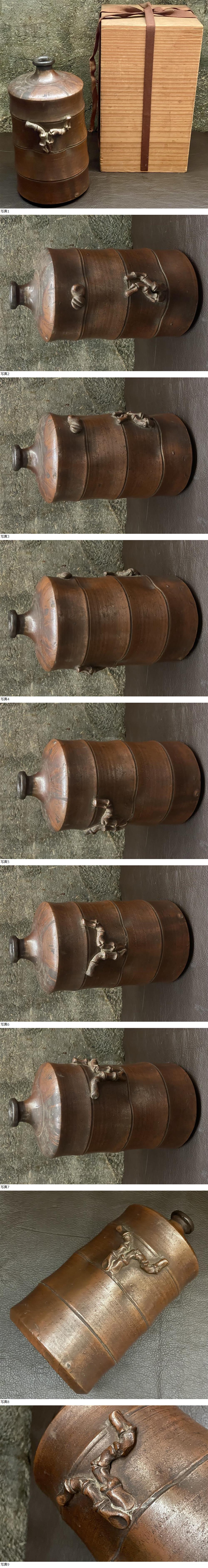 | 希少 名門 木村家系統 陶正園・木村陶峰等 備前焼 竹節花入 花器 徳利 陶印有 |