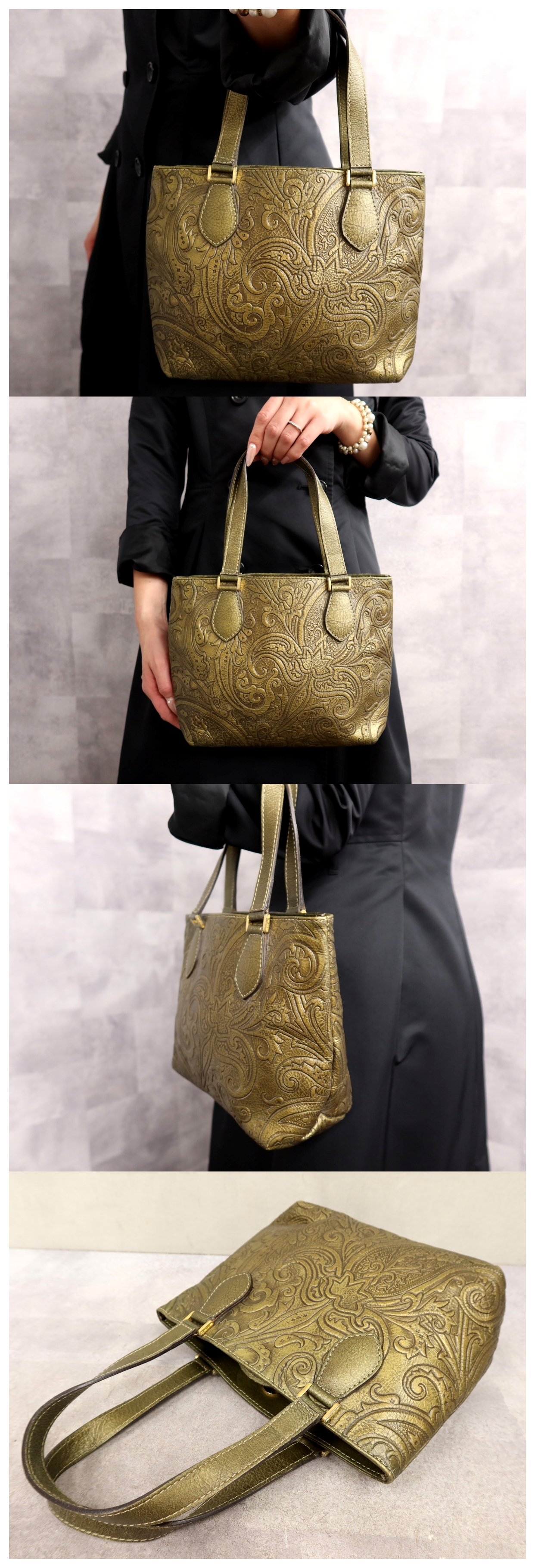 ●超美品●ETRO エトロ●ペイズリー柄●カーフ レザー 本革●ハンド バッグ●アンティークゴールド●ゴールド金具●腕掛け●Js65350 收藏