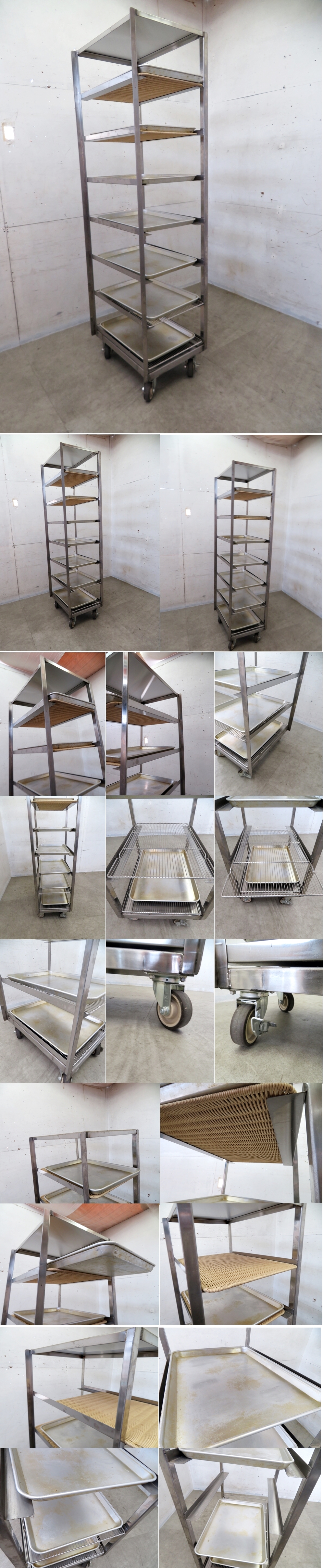 ■P411■インダストリアル■トレーワゴン/シェルフ■キャスター付き■ステンレス×アルミトレー■厨房器具■店舗什器■8段■ 收藏