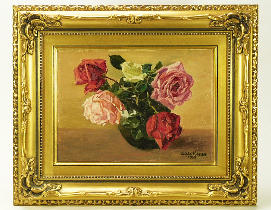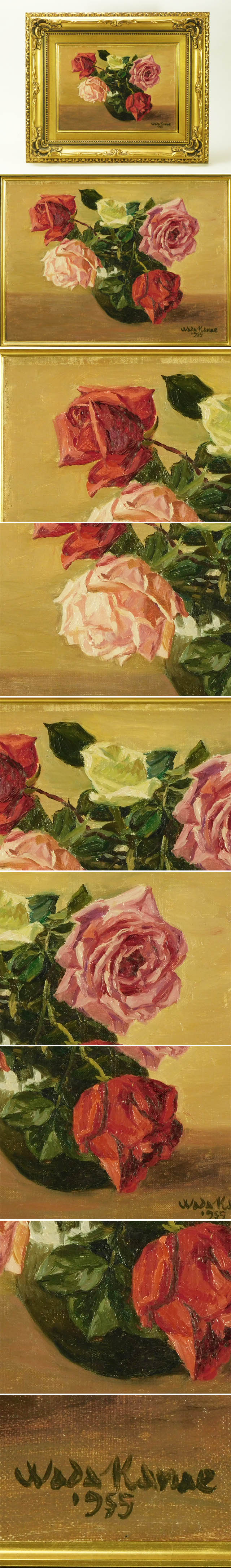 和田香苗 ばら(薔薇)F4号 油彩 1955年 額装 兄和田英作 師岡田三郎助 光風会 古油絵 s26030103 收藏