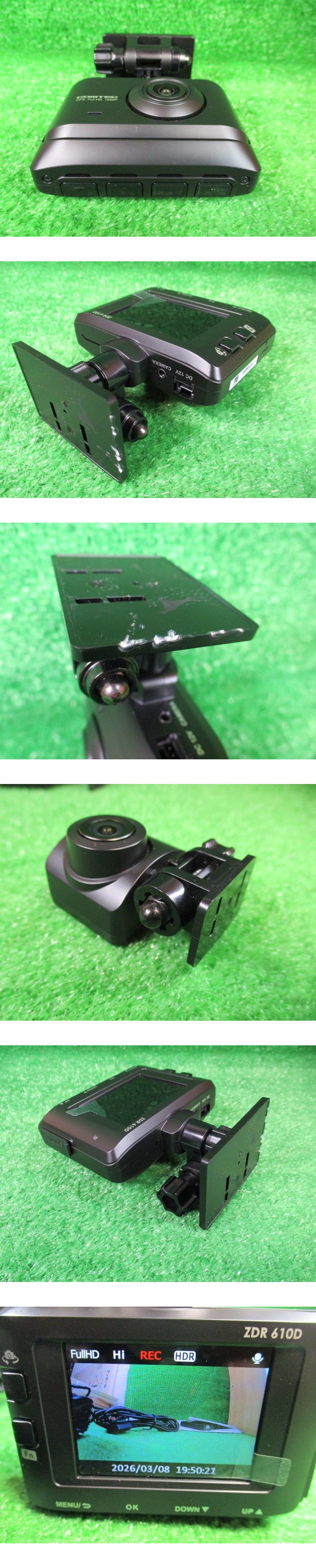 COMTEC/コムテック ZDR610D 前後ドライブレコーダーです。液晶画面には保護シールが貼ってありますがキレイに剥がせます。本体には多少の擦り傷、汚れ有ります。動作確認済みですが中古品の為ノークレームノーリターンでお願いします。送料は全国一律440円です。※microSDは付属しません。