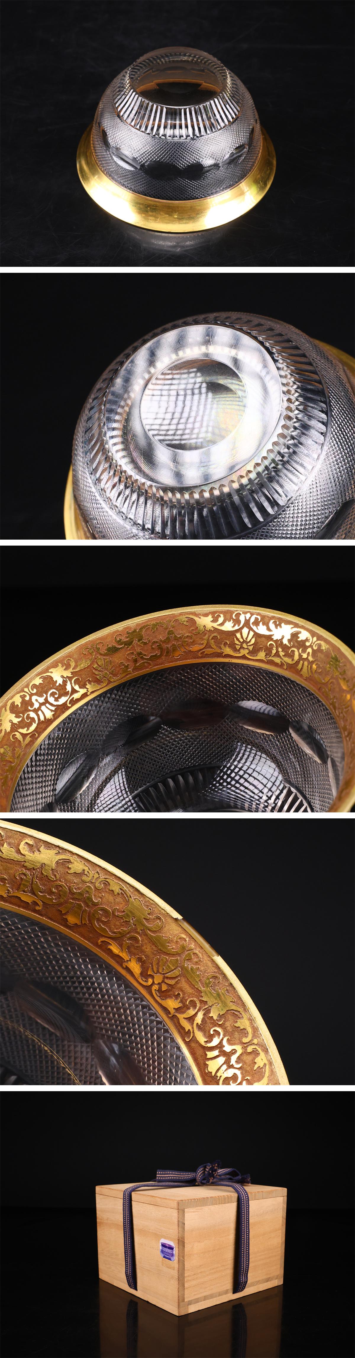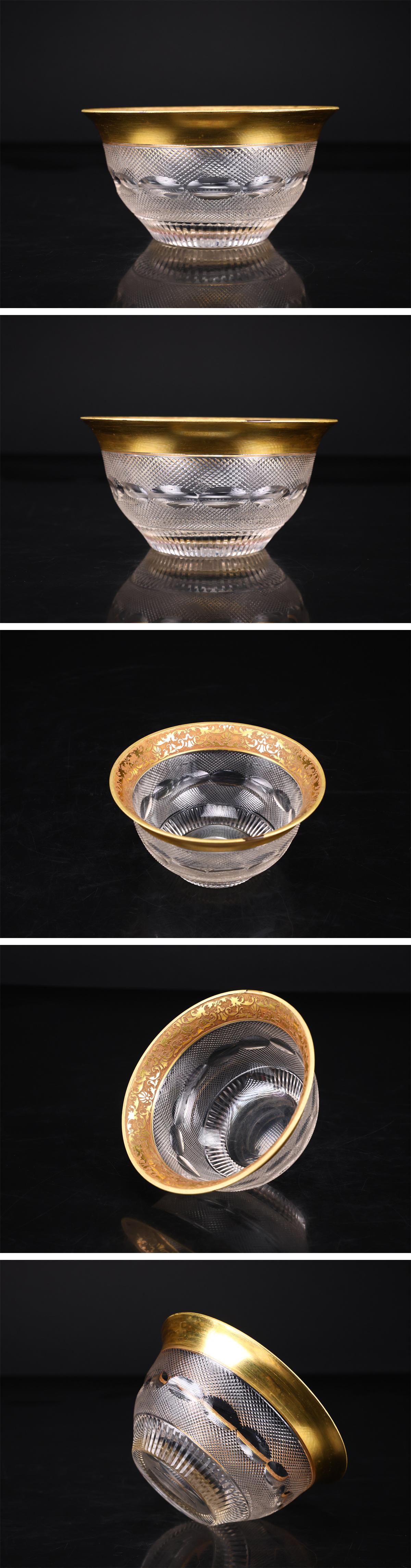 【吉】PD123 工芸ガラス MOSER 【モーゼル】 オールド クリスタルガラス 金彩カット 茶碗 径12㎝/箱付 金彩の落としありIh! 收藏