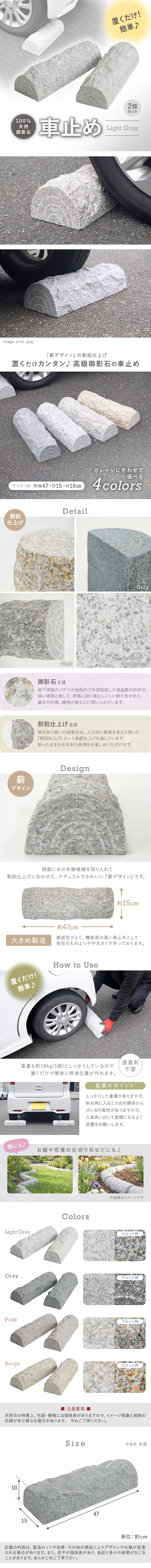 送料無料 車止め 高級みかげ石 薪デザイン タイヤ止め 車輪止め カーストップ 簡単置くだけ 簡単 設置 2本1組販売 2個セット ライトグレー 收藏