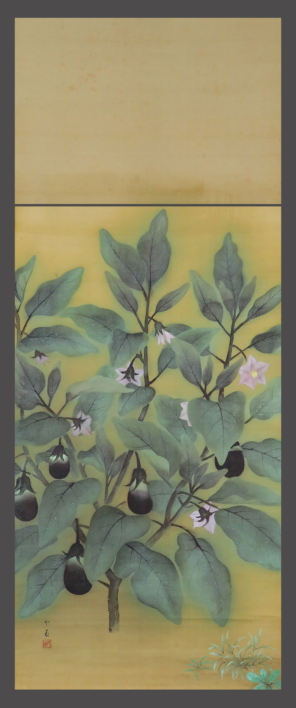 【adva】【真作】■堂本印象■茄子図大幅■京都を代表する日本画家■肉筆■掛軸■掛け軸■日本画■ 收藏