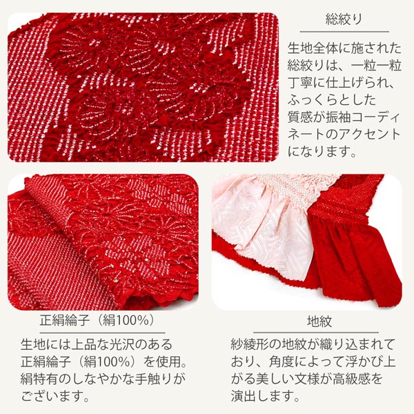 さらに、生地全体に施された総絞りは、一粒一粒丁寧に仕上げられた立体感のある伝統技法。