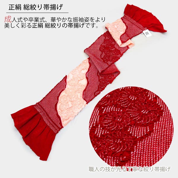 成人式や卒業式、華やかな振袖姿をより美しく彩る正絹 総絞りの帯揚げです。