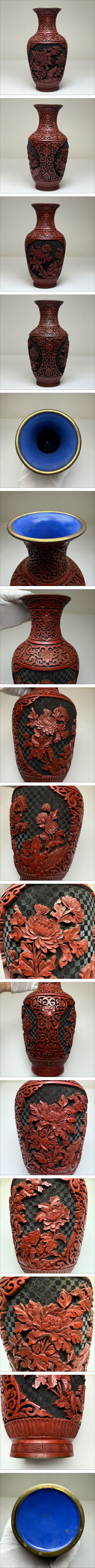 2603083-中国古美術 時代物 漆器 漆芸 堆朱 花瓶 花入 花生 花器 花草図 唐物 中国古玩 骨董品 古董 收藏