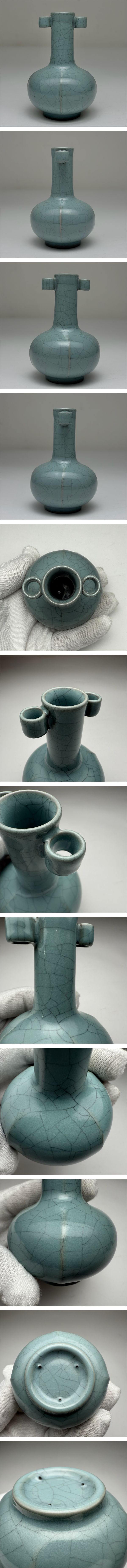 X-中国古美術 時代物 青磁 官釉?小瓶 花器 花瓶 貫耳付 投壺型 唐物 陶磁器 中国古玩 骨董品 古董 收藏