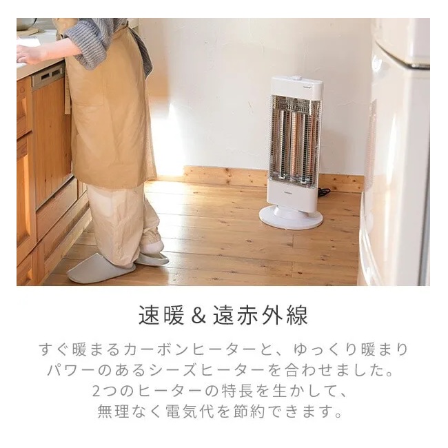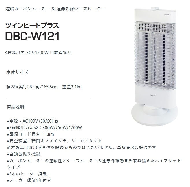 【山善】 ツインヒートプラス DBC-W121 (MW) マットホワイト 速暖カーボンヒーター & 遠赤外線シーズヒーター 收藏