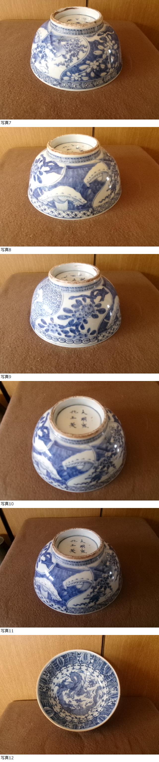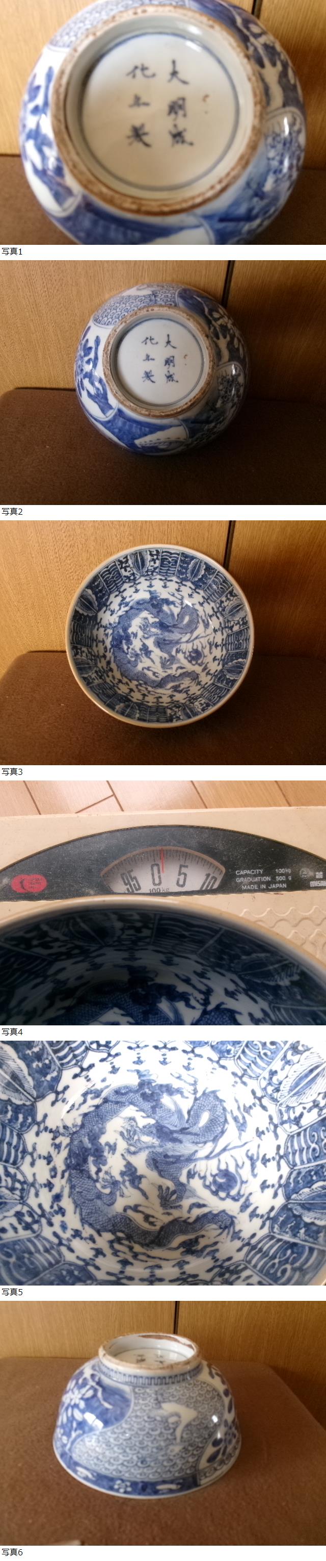 中国 大明成化年製 染付 龍図鉢 船 鷺 鳥 植物 無傷 重さ約1,3㎏有 直径約21,5㎝ 高さ約11㎝無傷 伊万里 古い 收藏