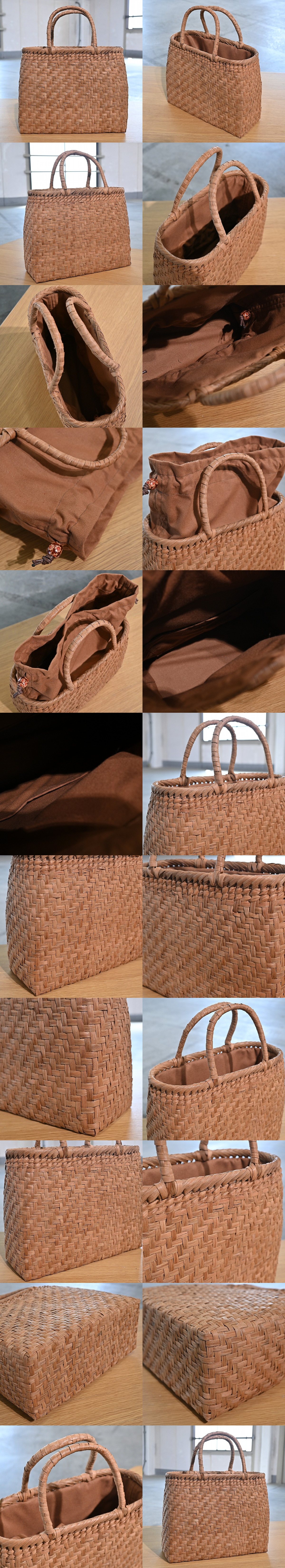 新品未使用 志穂里 山葡萄かごバッグ 14万 O 網代編み 柿渋染め 三越伊勢丹 ハンドメイド 内袋 巾着 レディース 手提げ 女性 籠 やまぶどう 收藏