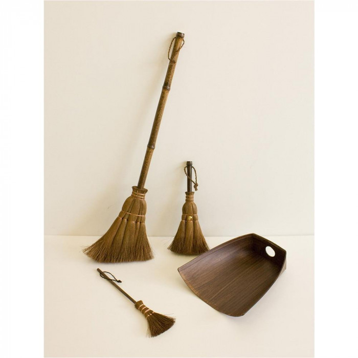 | 素材・材質 | ほうき(大・小)・柄:黒竹 毛・ひも:棕櫚 テーブルほうき:柄・竹 毛:棕櫚 ちりとり:紙(柿渋塗装) |
