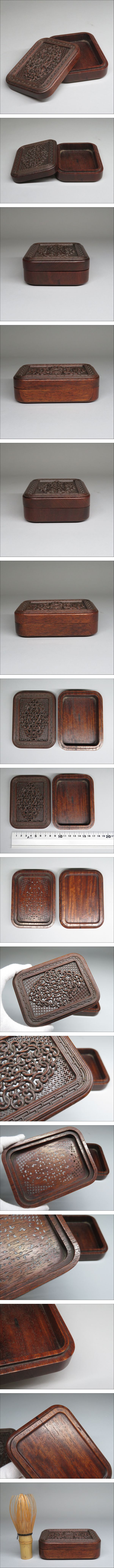 | 【東】清時代 木製 唐木透彫盒子 透かし彫り 蓋物 中国美術/古美術・骨董品 | ||
