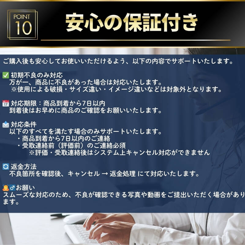 | ・本製品は海外インポート製品です。製造や輸送の過程で生じる細かな傷や擦れ、色ムラ等がある場合がございますが、その分大変お求めやすい価格設定となっております。 ・お取り付けや適合確認に関する個別のサポートは行っておりません。 ・お取り付け時の破損や、適合未確認を理由とした返品・交換はお受けできかねます。 ・万が一、商品本体の初期不良等がございましたら、誠意を持って対応させていただきます。必ず【受取評価前】にご連絡をお願いいたします。 | |||